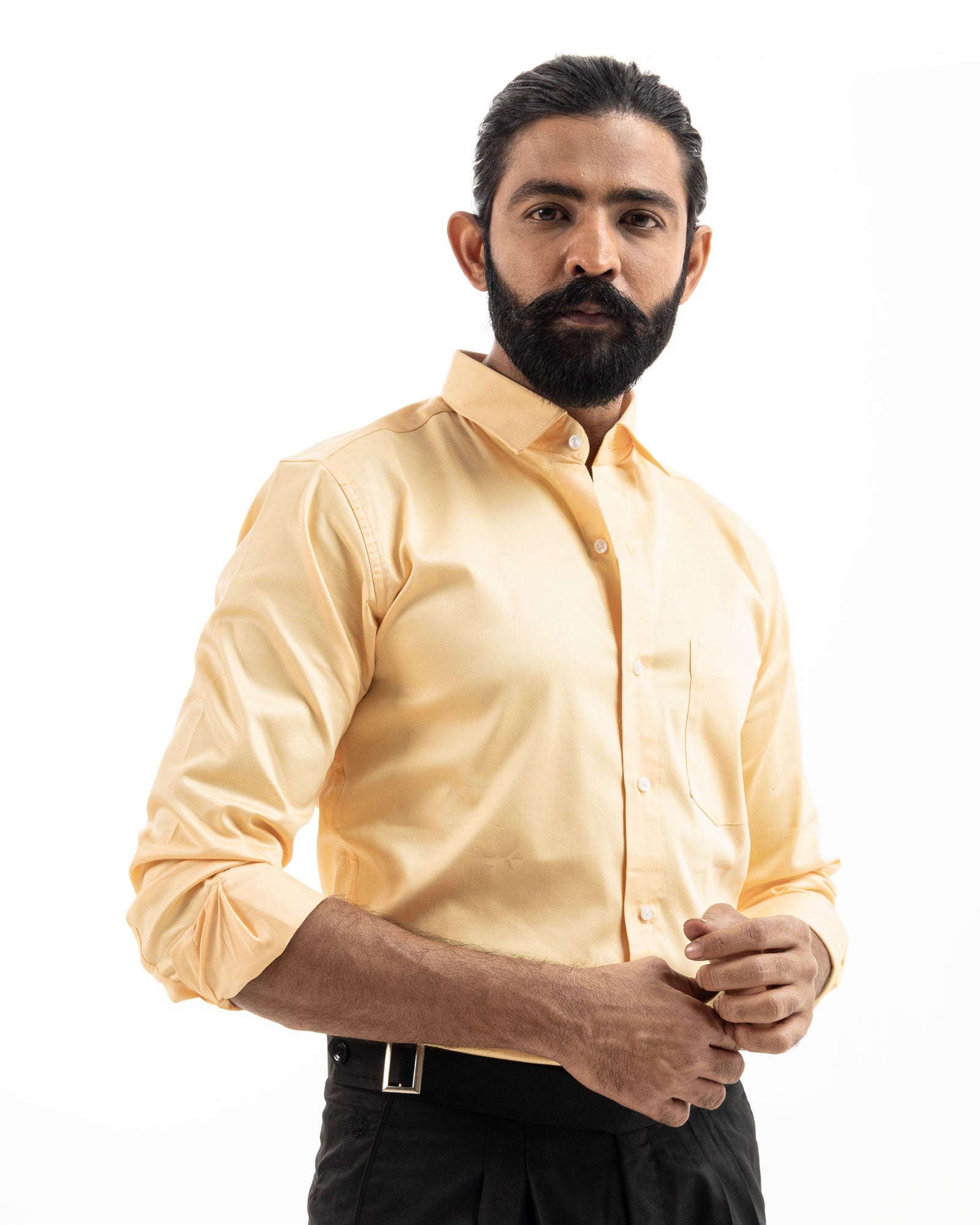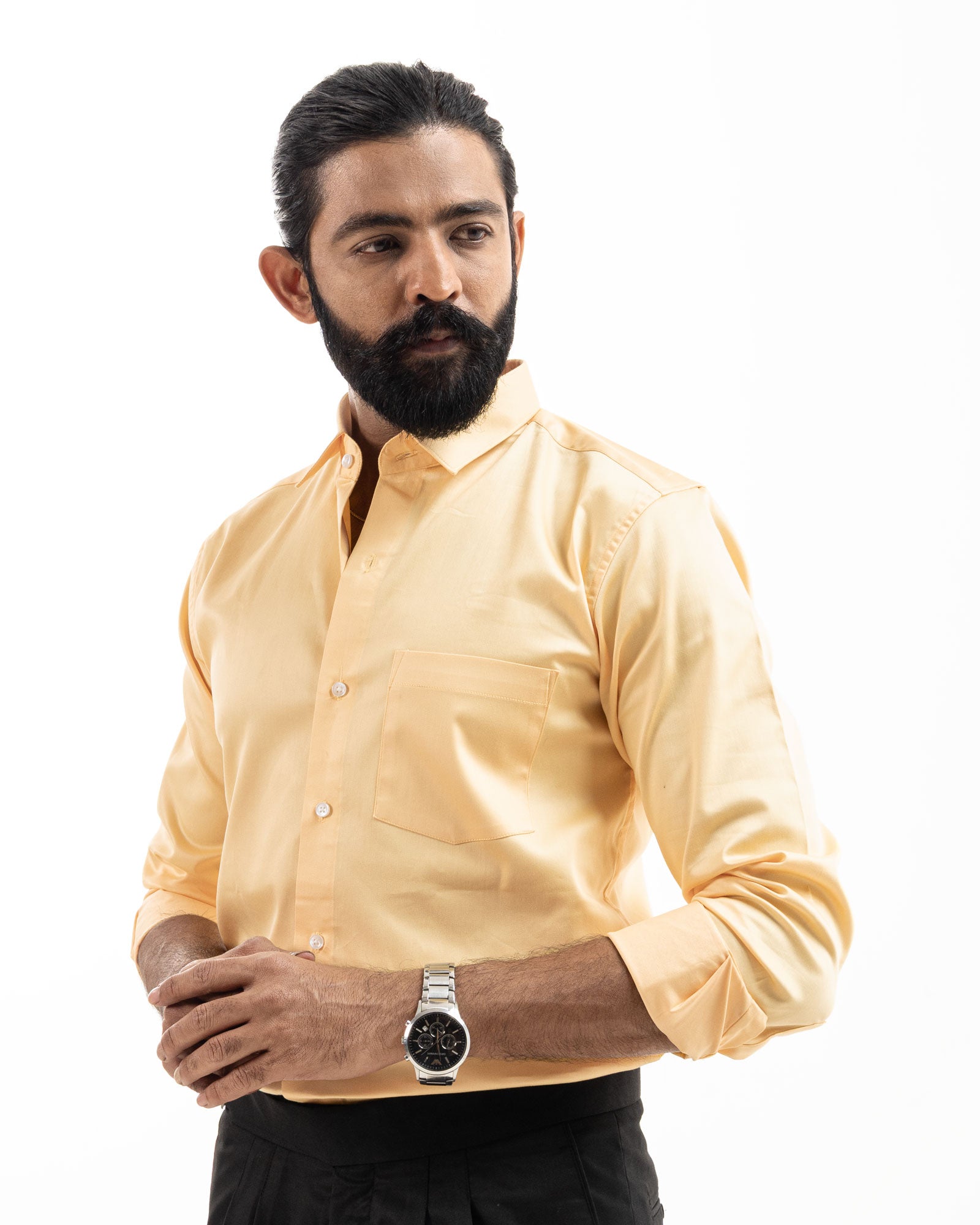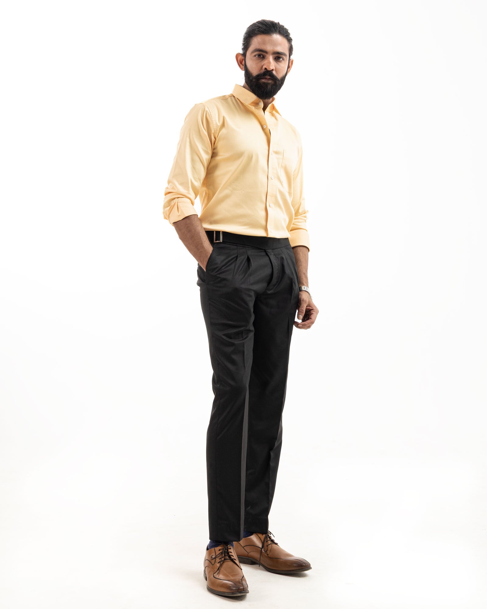 This classic yellow shirt is tailored from premium cotton fabric, offering a crisp, smooth finish with a polished look. Featuring a sharp collar, clean front pocket, and a structured fit, it's ideal for formal settings or refined everyday wear.