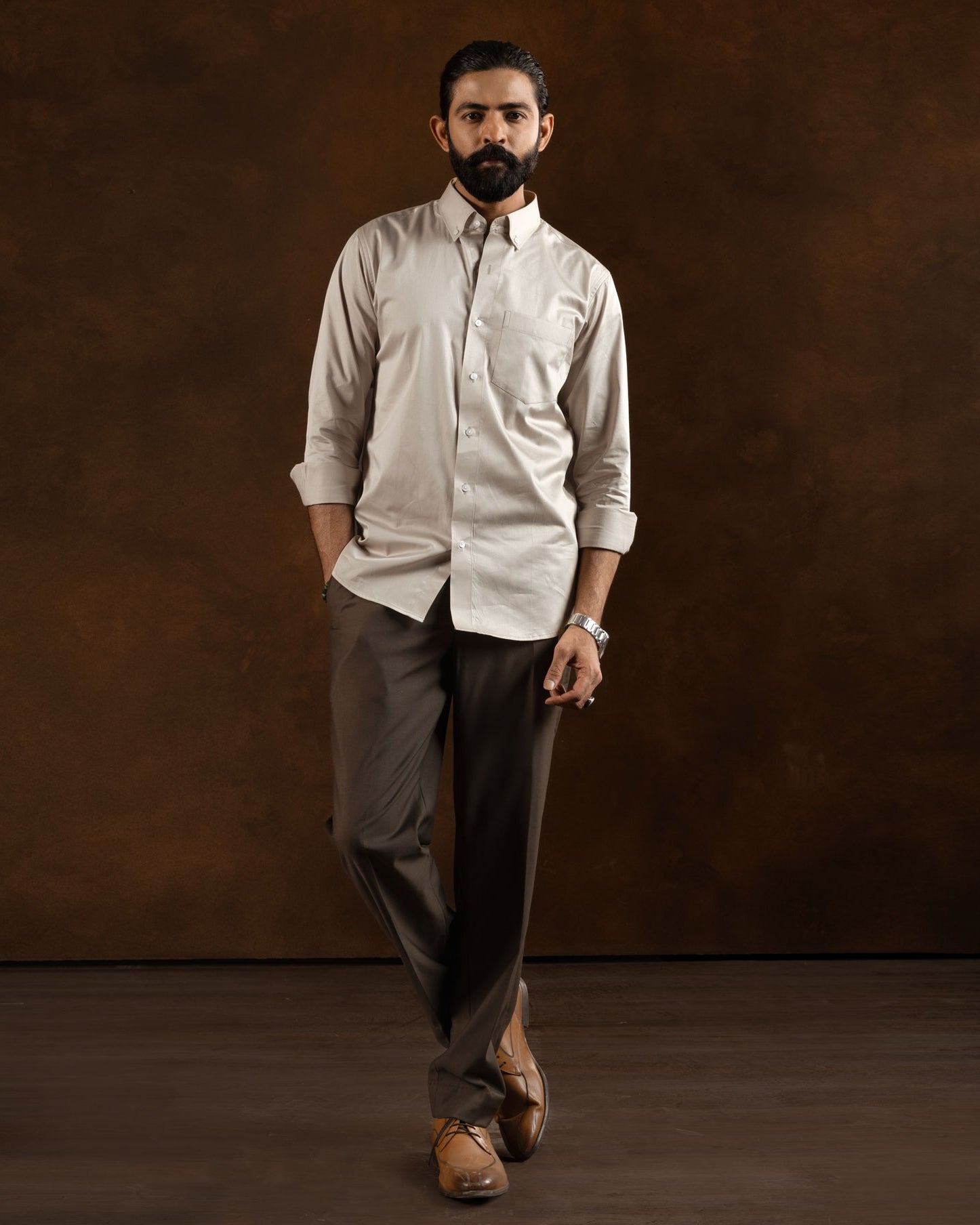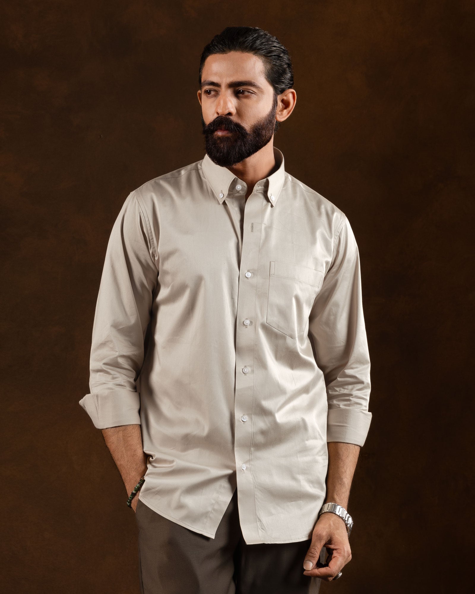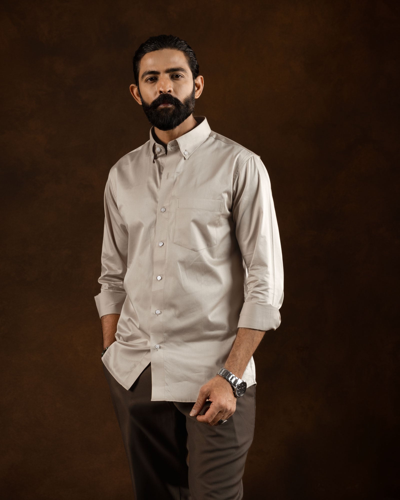 Clean and considered, this plain cotton shirt features a sharp button-down collar and a refined slim silhouette. Crafted from premium cotton with a smooth, breathable hand feel, the fabric holds its structure while staying comfortable throughout the day, making it a timeless choice for workdays and polished casual moments.