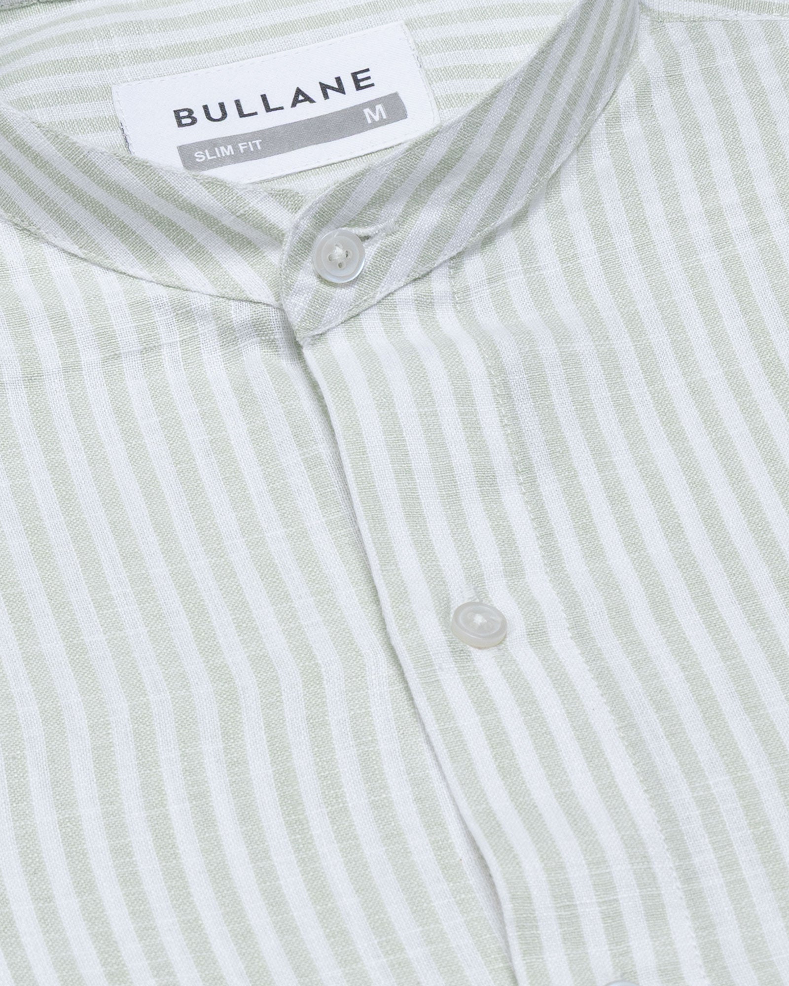Siento Sky Blue Linen Stripe Mandarin Shirt