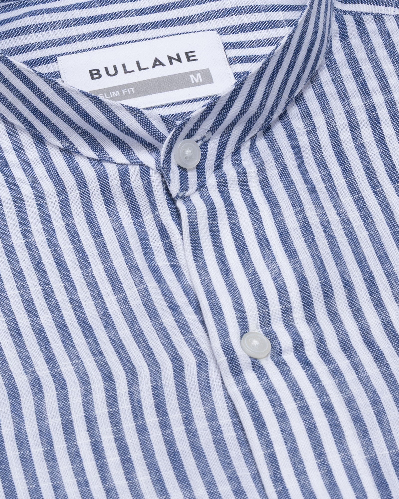 Axelts Navy Blue Linen Stripe Mandarin Shirt