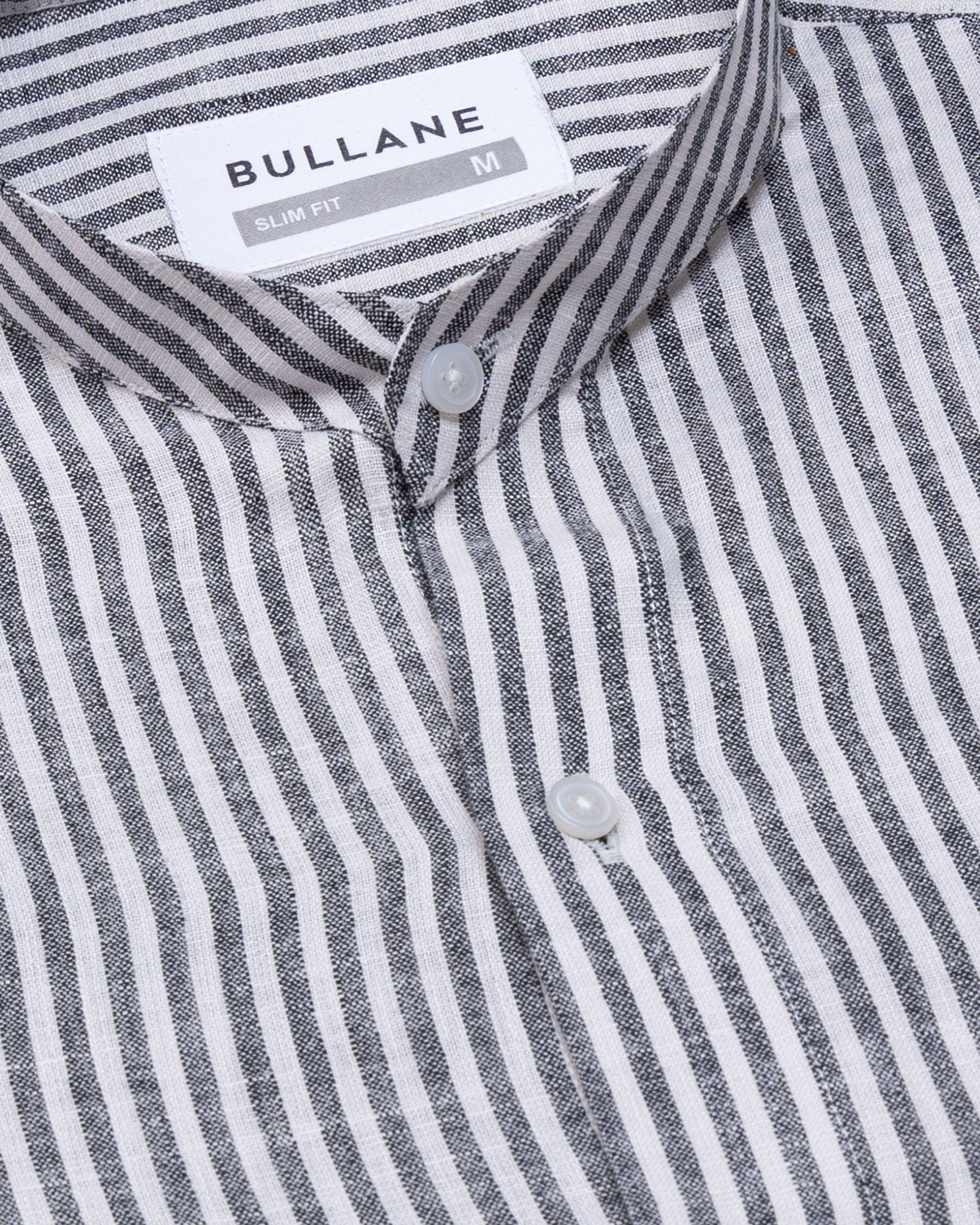 Armin Black Stripe Oxford Cotton Mandarin Shirt