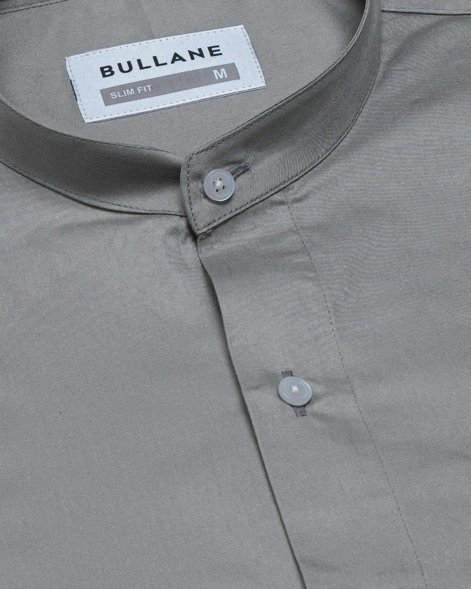 Luce Ash Grey Cotton Plain Mandarin Shirt