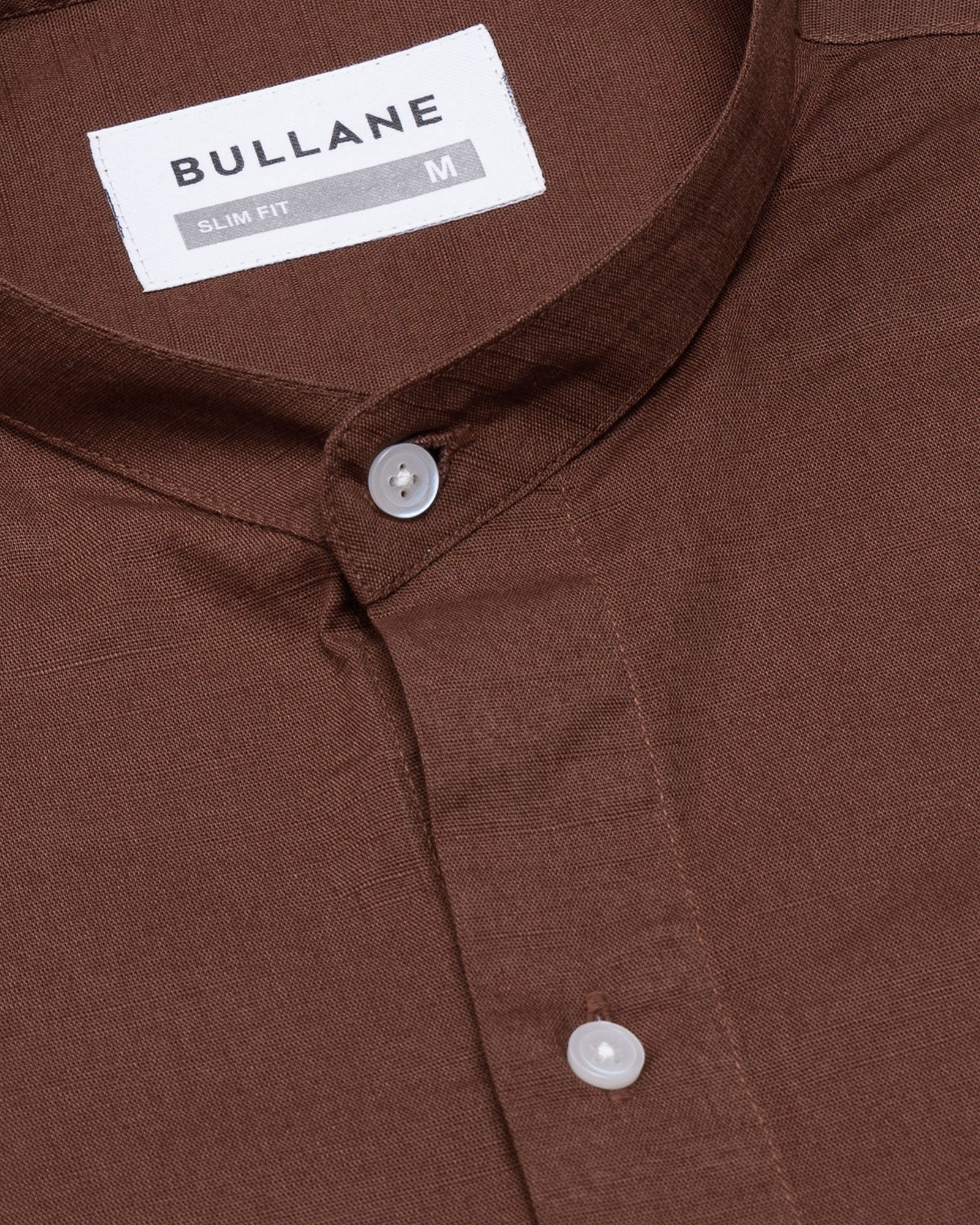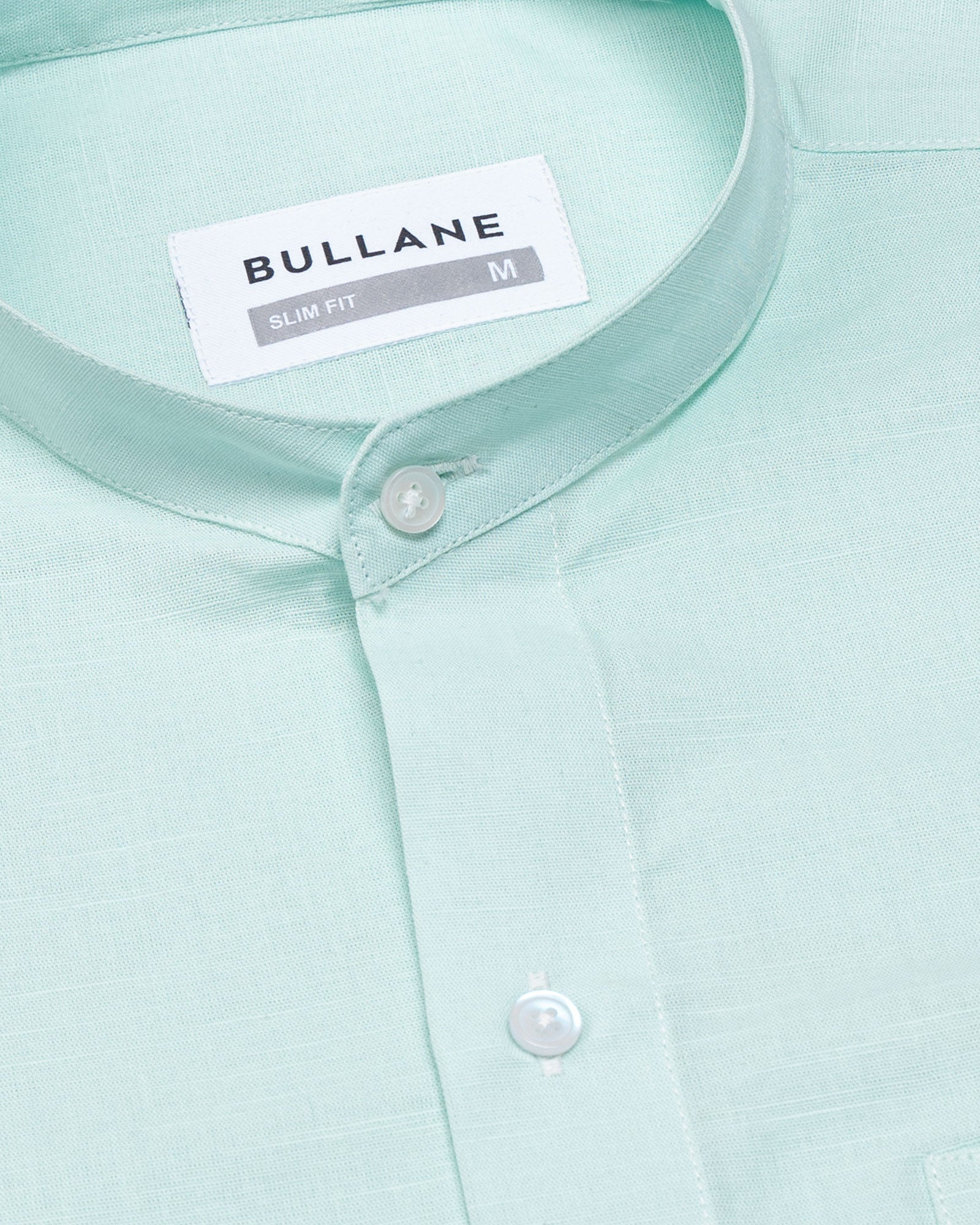 Axors Light Yellow Linen Plain Mandarin Shirt