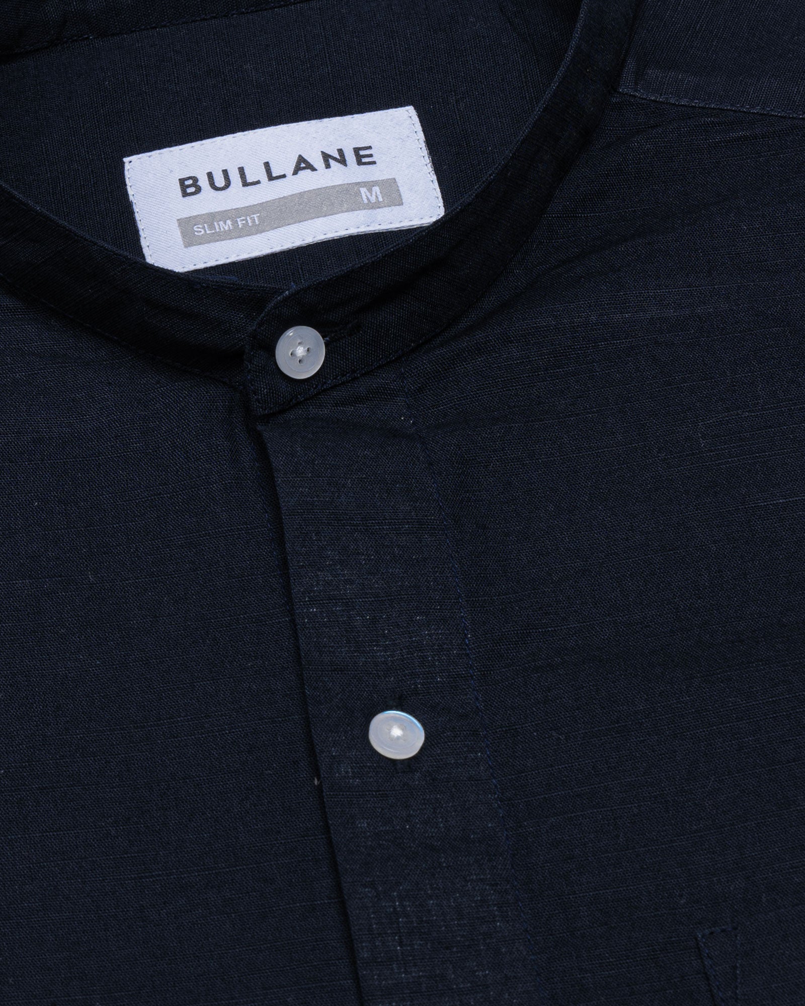 Axors Navy Blue Linen Plain Mandarin Shirt